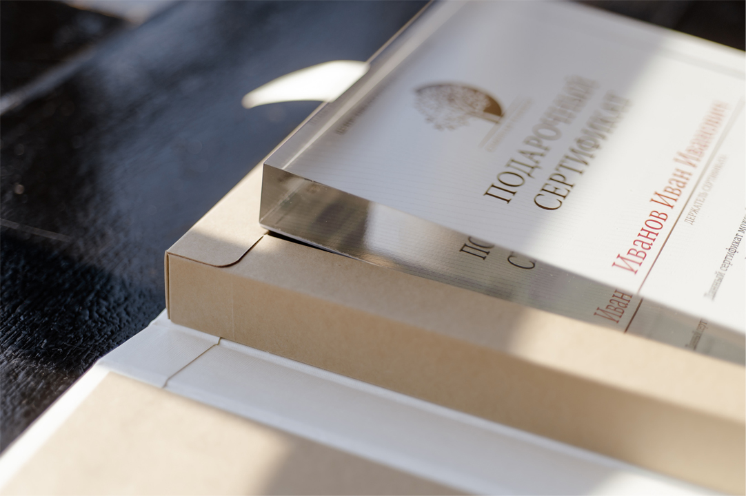 Именной сертификат, выполненный в акриле, эффектен эстетически и приятен тактильно